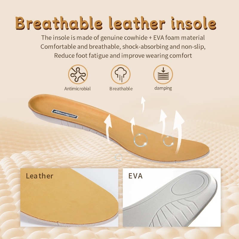 Piel de vaca genuina + plantilla de espuma EVA: transpirable, amortiguadora y antideslizante. Mantiene los pies frescos kilómetro tras kilómetro.