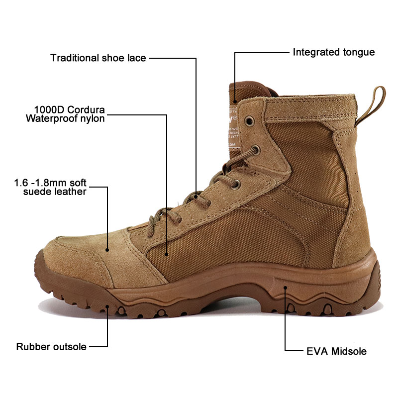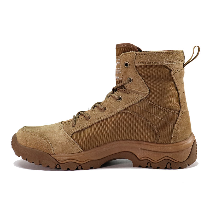 Desde wadis rocosos hasta dunas de arena sueltas, las botas tácticas de desierto de caucho Cordura Fabric están diseñadas para funcionar. La parte superior duradera de Cordura resiste el desgaste y mantiene el peso bajo, y la suela de goma multidireccional brinda una base firme en superficies desérticas impredecibles. Envíenos su consulta para obtener más información.