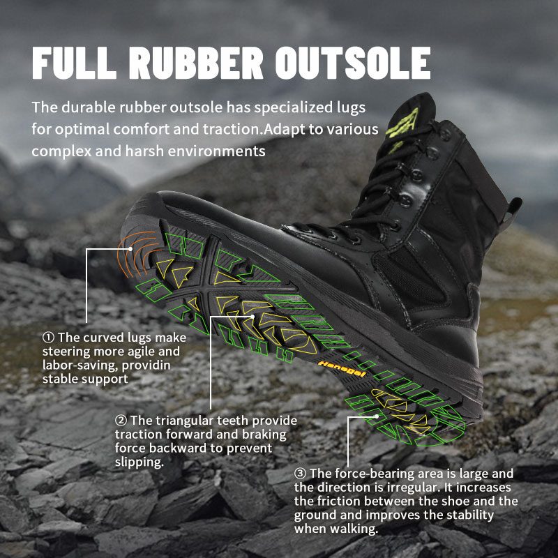 La suela de goma duradera tiene tacos especializados para una comodidad y tracción óptimas. Se adapta a diversos entornos complejos y hostiles.
