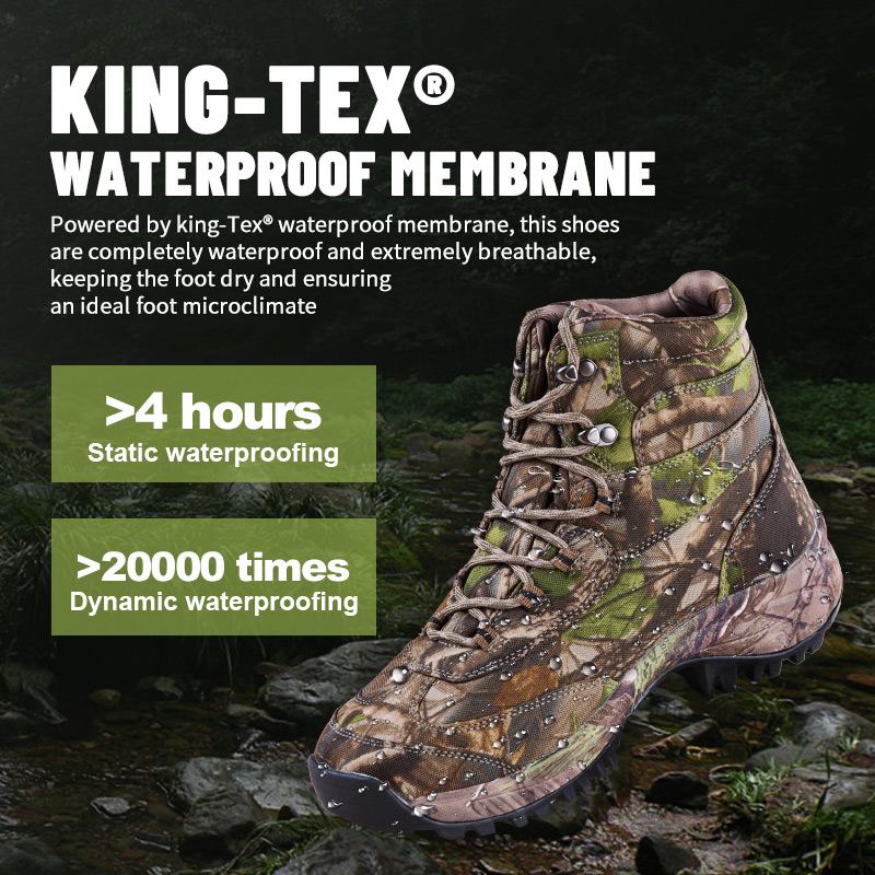 Estas botas de caza de membrana impermeable Kingtex están en stock y listas para enviarse, con pedidos a partir de solo 10 pares. Para obtener más detalles o consultas sobre precios, no dude en comunicarse con nosotros en cualquier momento. La personalización también está disponible con un pedido mínimo de 800 pares. Y este modelo tiene las siguientes ventajas: