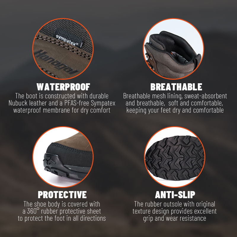 Estas botas de montaña duraderas e impermeables Sympatex están en stock y listas para enviarse, con pedidos a partir de solo 10 pares. Para obtener más detalles o consultas sobre precios, no dude en comunicarse con nosotros en cualquier momento. La personalización también está disponible con un pedido mínimo de 800 pares. Y este modelo tiene las siguientes ventajas: